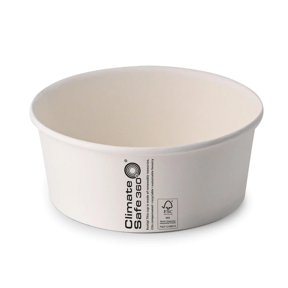 Culoare: alb; la imbinare pe verticala este inscriptionat mesajul: "EcoUp! This cup is made of renewable resources. CO2 compensated. recyclable. sustainable forestry"