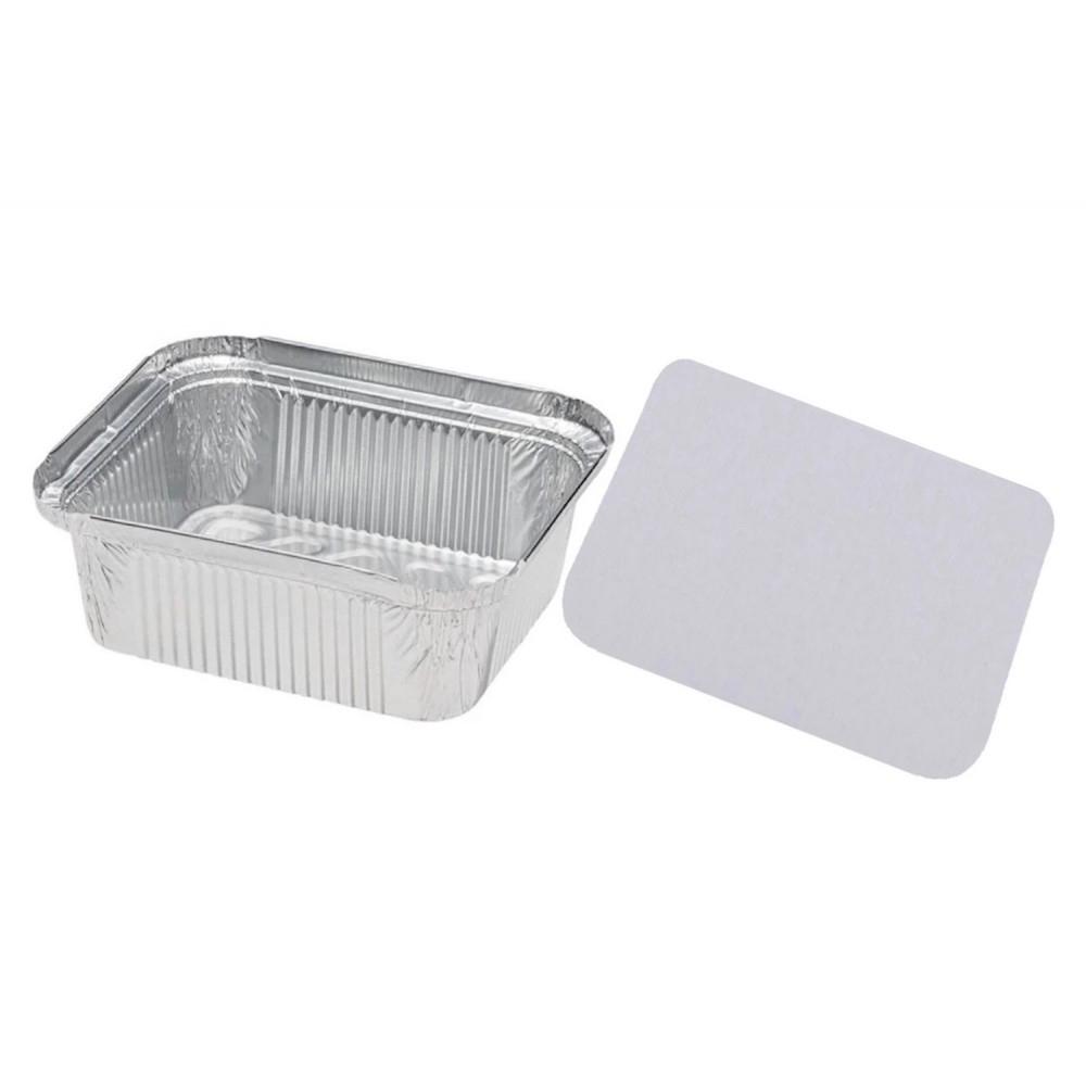 Caserole aluminiu cu capac carton, 900 ml, 20.2x13.7x5 cm, set 100 buc