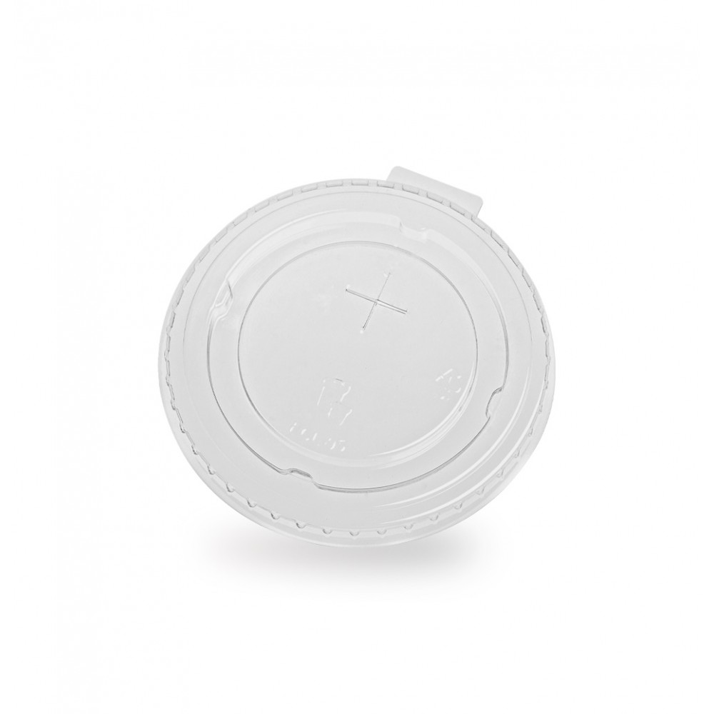 Etichete: capace, transparente, plate, cu orificiu pai, rPET, Ø 90 mm, street food, suc, fresh